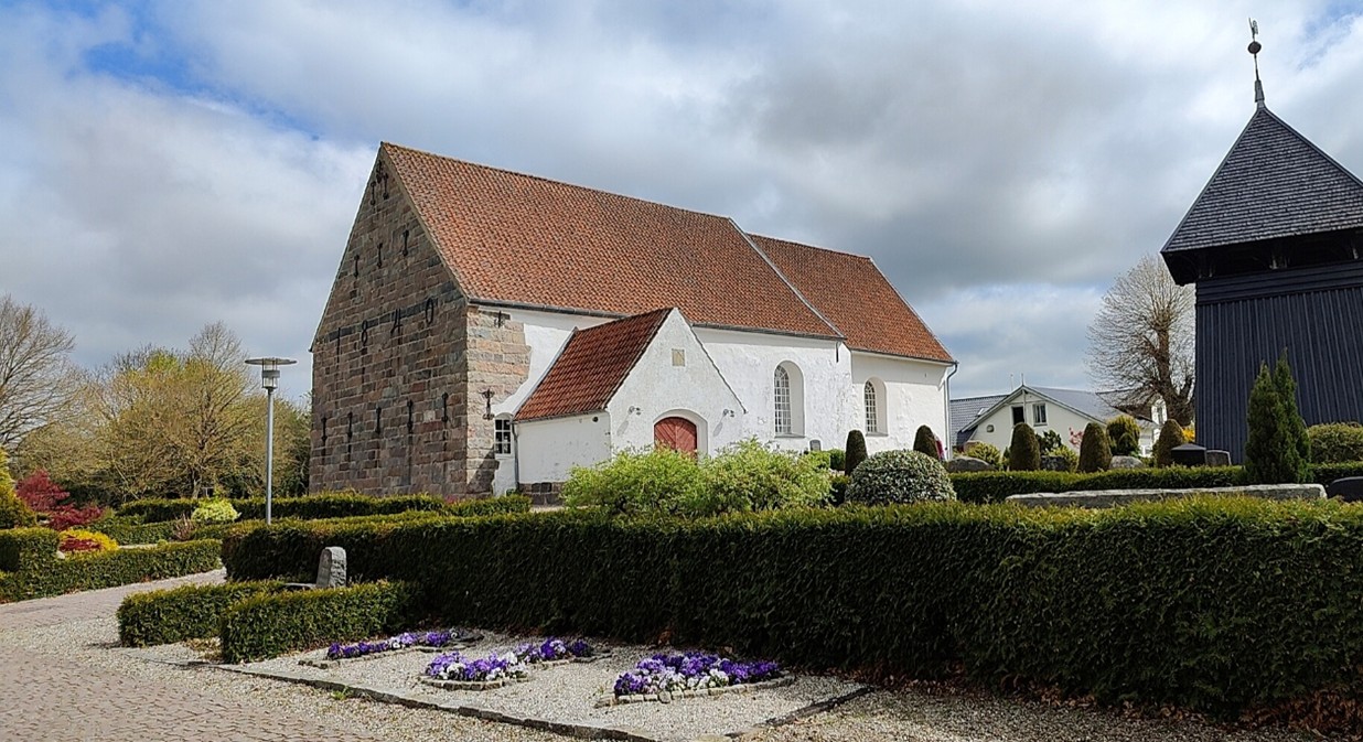 Selve kirken består af kor og skib fra romansk tid (1200 tallet). Kirken er bygget af forskellige materialer, blandt andet af kamp-og munkesten, da den i årenes løb har været ramt af sammenstyrtninger, sidste gang i 1840, hvor vestgavlen blev genopbygget i tilhuggede kampesten.I korets østgavl ses det eneste oprindelige vindue, et spidsbuet gotisk vindue, som dog blev blændet, da man fik en altertavle i kirken. Den eneste indgang er igennem våbenhuset i syd – fra ca år 1500. På våbenhusets gavl ses et solur i grå kalksten fra 1698.
